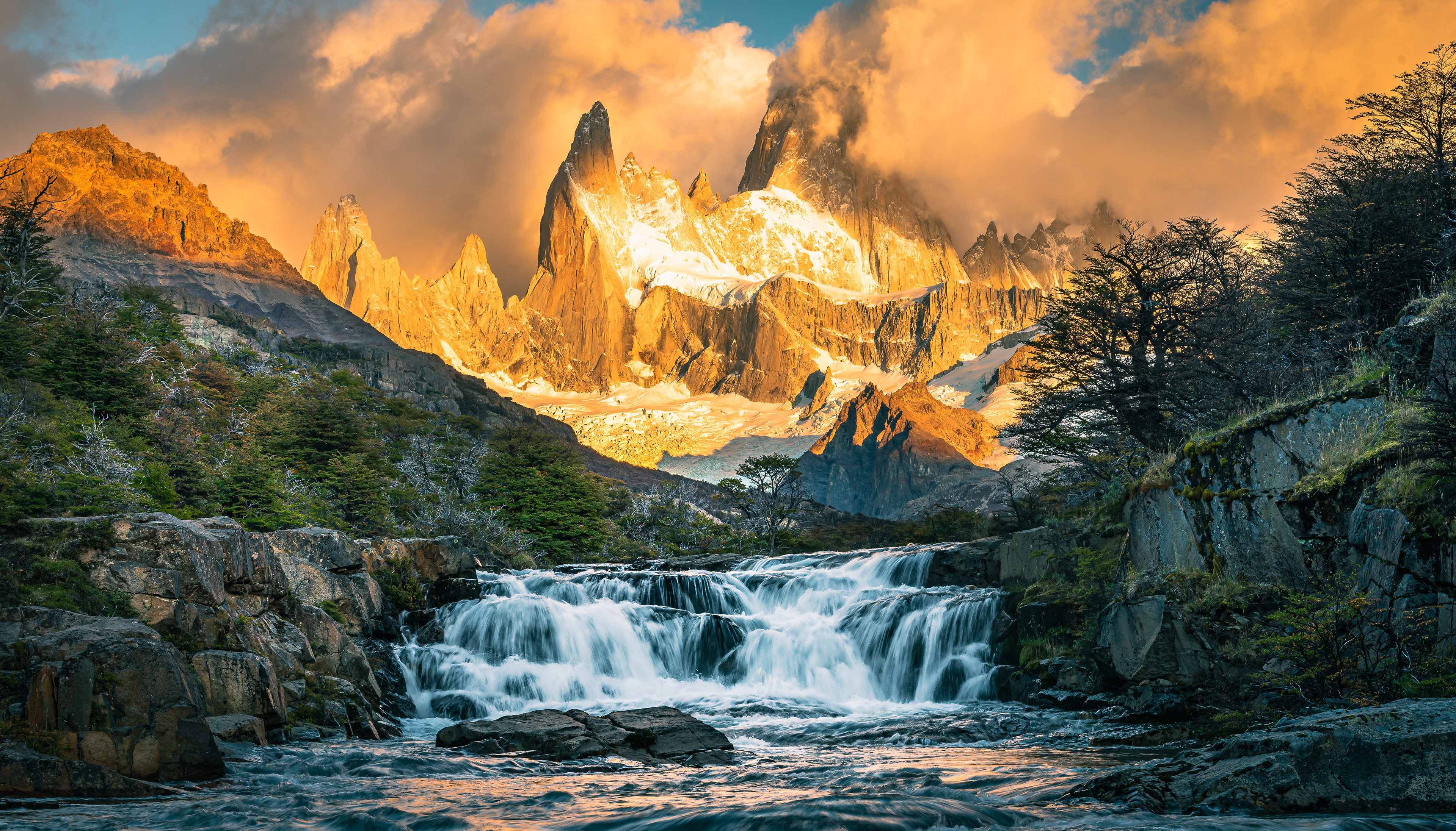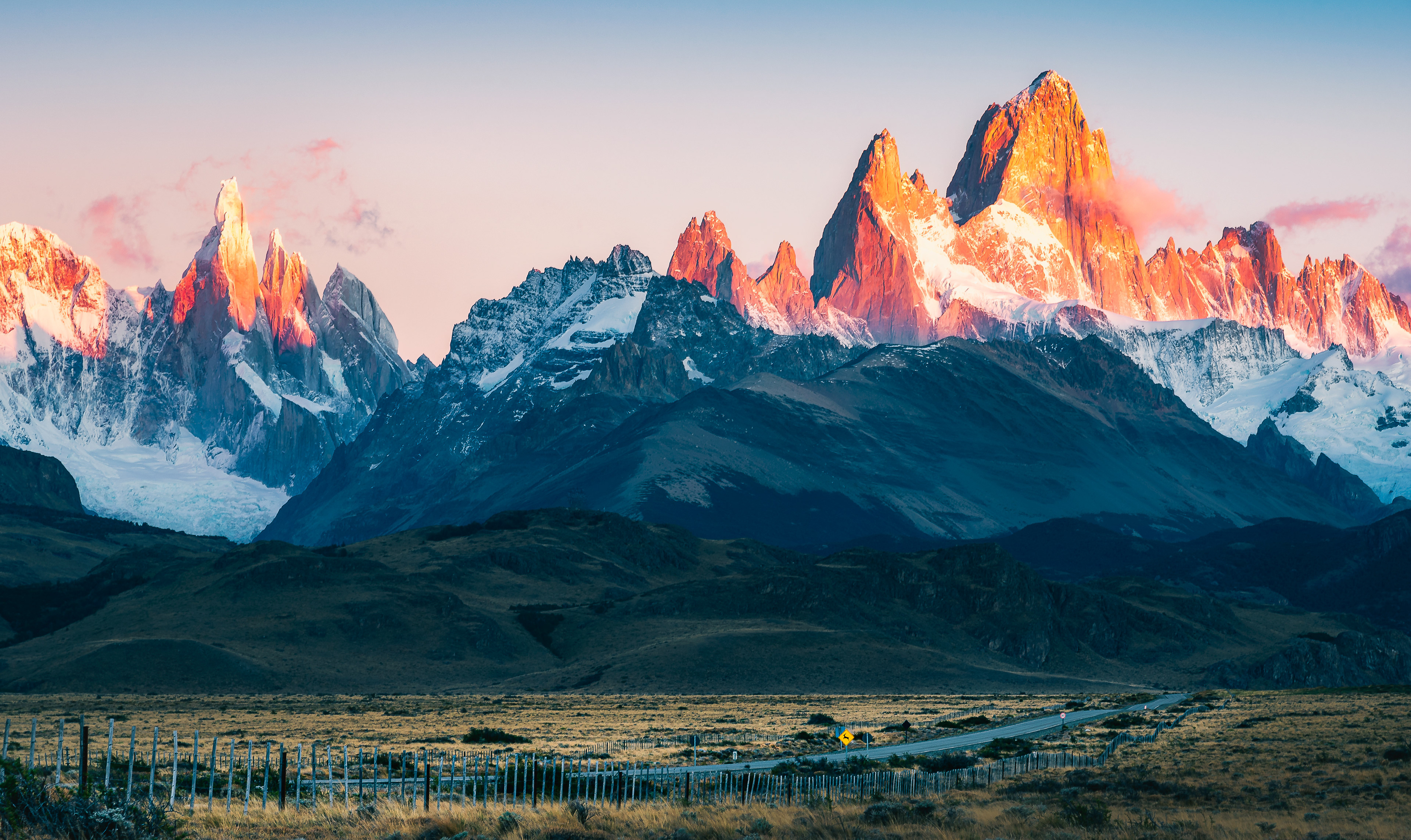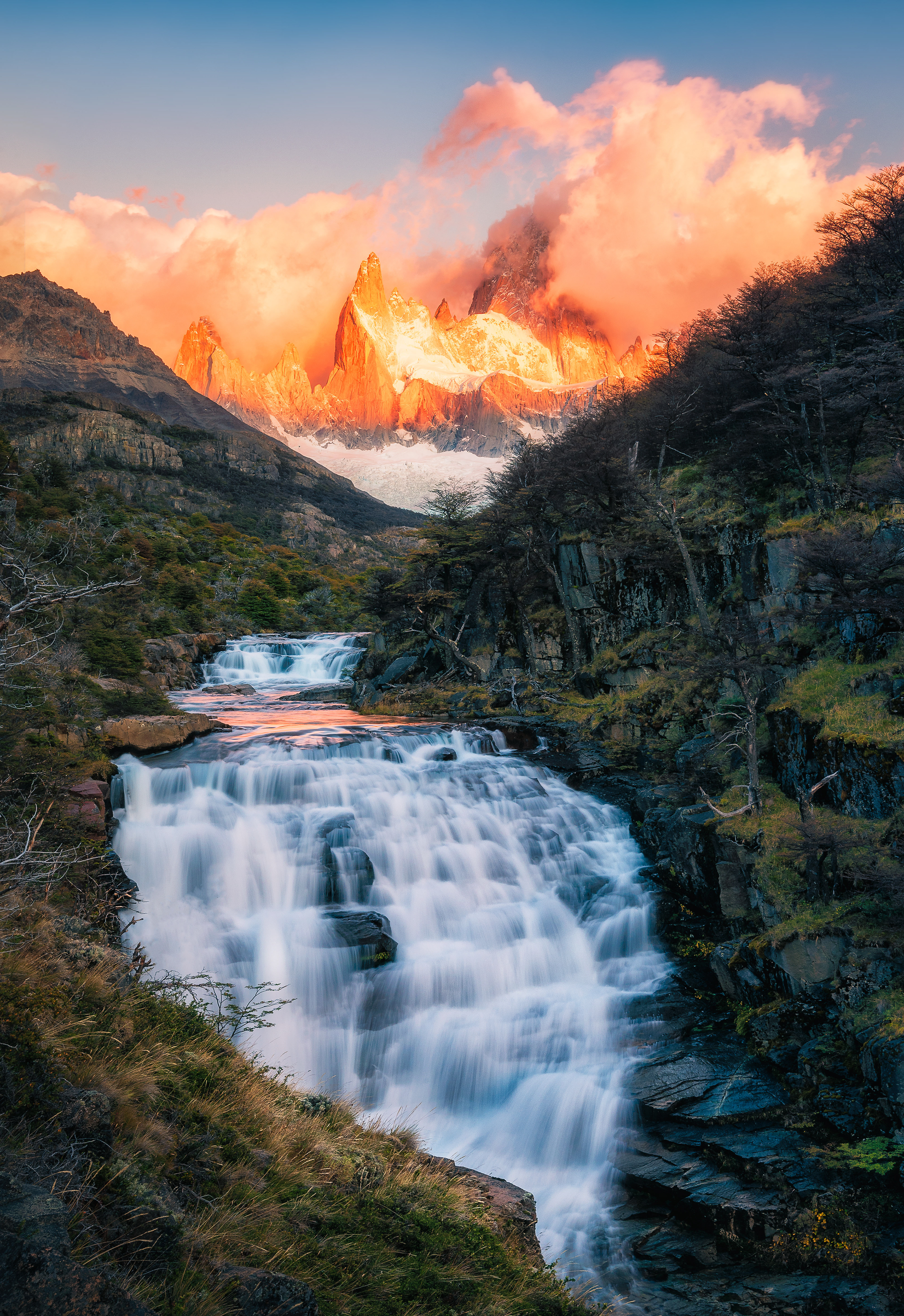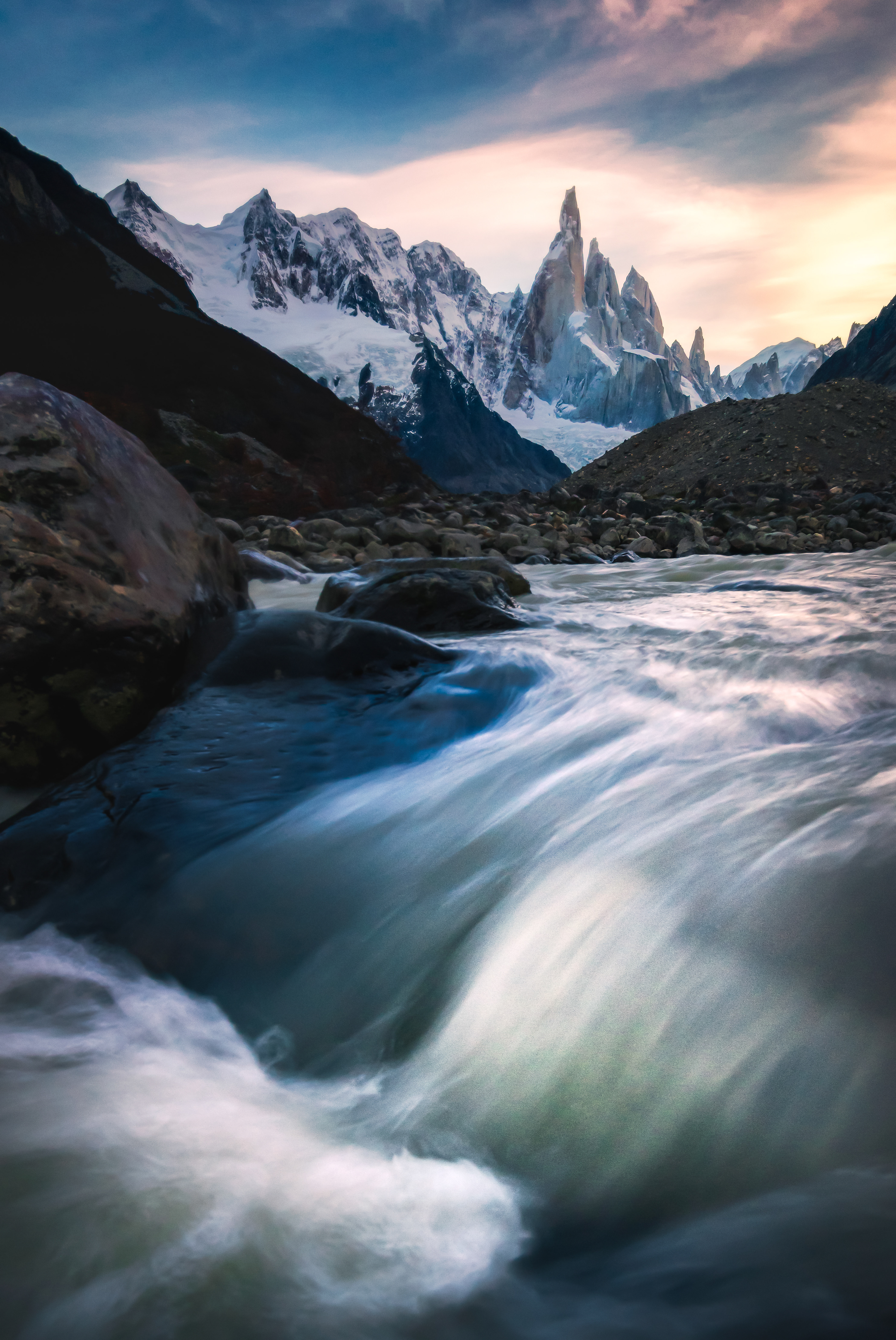 Rio de Las Vueltas, Fitz Roy e Cerro Torre ao amanhecer